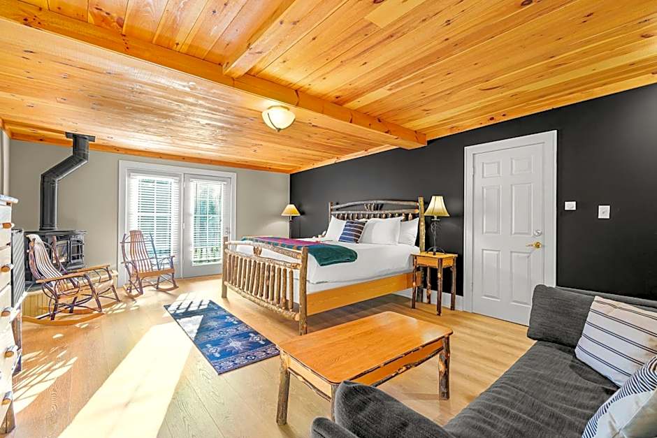 This 2-bedroom suite with a Chef's Kitchen features an open kitchen-living room-dining room floor plan, a Large stone fireplace. The 2 bedrooms share a common bathroom.